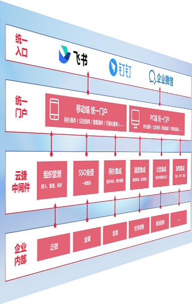 对协作平台提供支持服务,,支持企业应用与协作平台对接,,,包含组织同步、、消息集成、、、、待办集成等。。。支持目前主流的协作平台:钉钉、、、企微和飞书。。